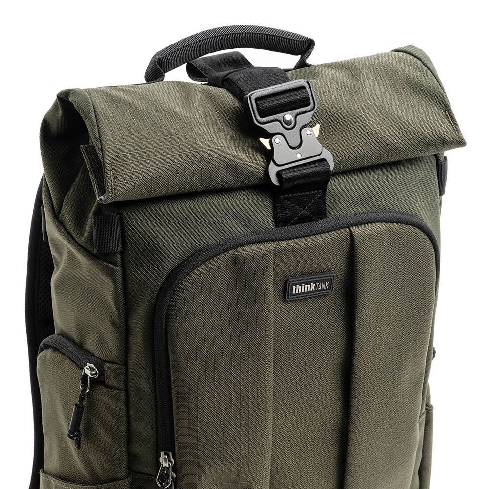 The FocusPoint rolltop backpack is thoughtfully designed for convenience and versatility. It features rear panel and side access to your camera gear, ensuring quick and effortless retrieval.