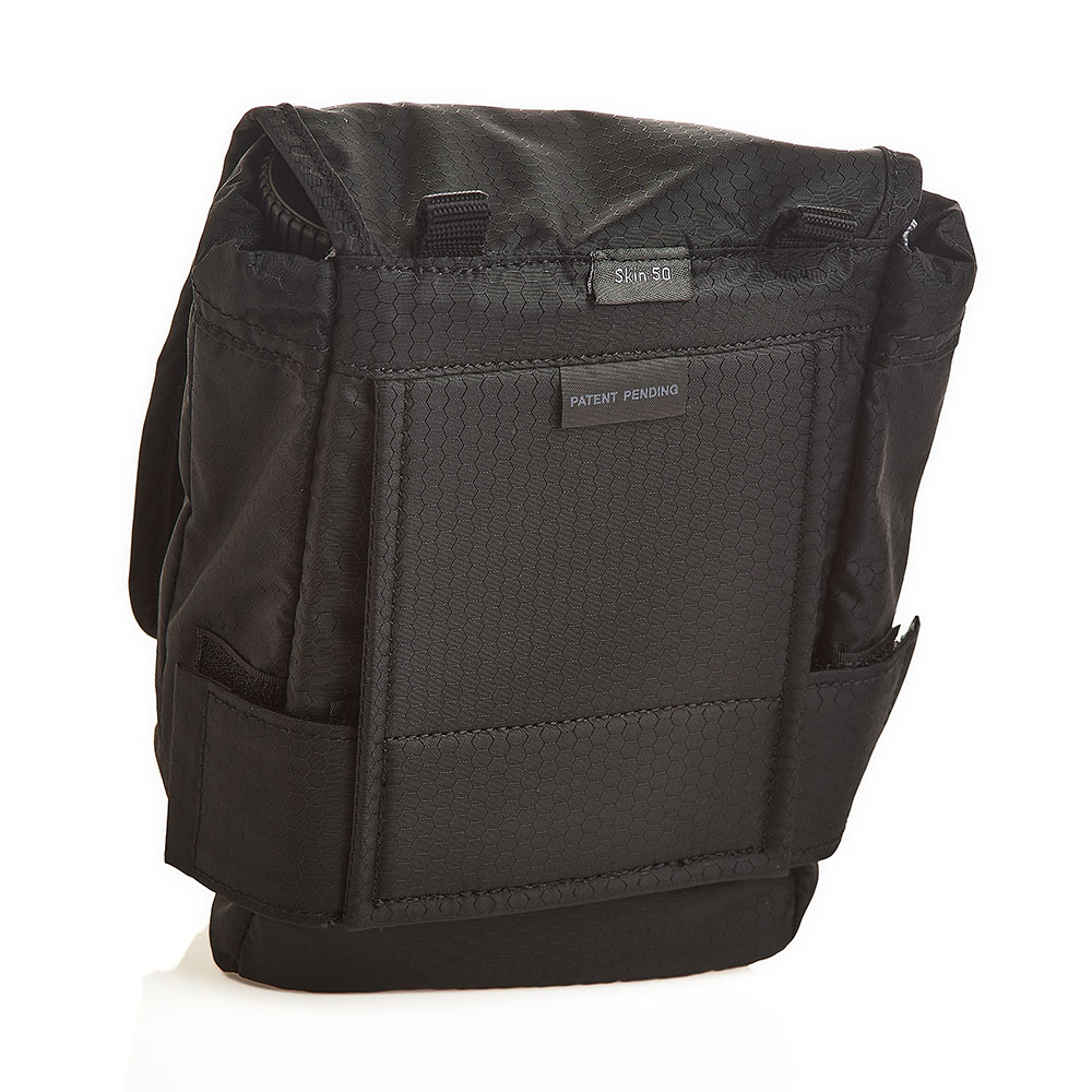 The black Skin 50 V2.0 from Think Tank is a lightweight belt pouch designed to accommodate wide and standard zoom lenses ranging from a 14-24mm f/2.8 to a 24-70mm f/2.8 with the lens hood attached. The pouch features an easy throw, elastic drawstring or hook & flap closure that will attach to any Think Tank belt, harness or belt pack.