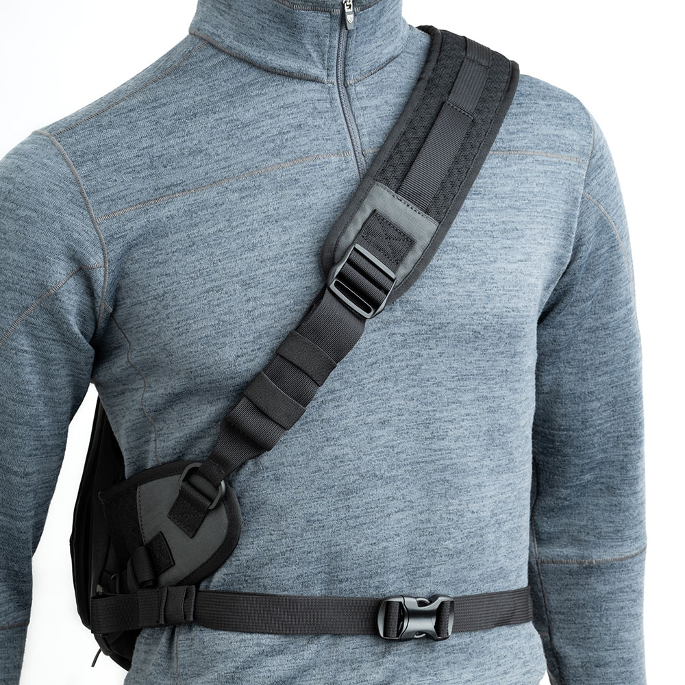 The PhotoCross Sling V2 is built for outdoor photographers who demand comfort, protection, and durability. A side-access panel lets you quickly rotate the bag from back to front for fast camera access—no need to take it off. A wide, padded, ventilated shoulder strap, supportive waist wing, and tuck-away stabilizer strap provide all-day ergonomic comfort. Made with rugged, weather-resistant materials, the PhotoCross is the ultimate sling for active shoots where performance matters.